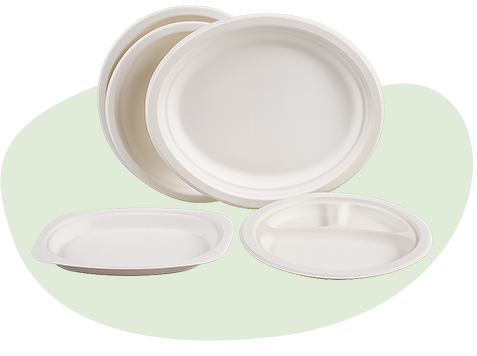 Beautifully made oval bagasse plates, designed from plant fiber molded into an attractive shape for sustainable dining. Convenient for use in informal as well as formal environments.